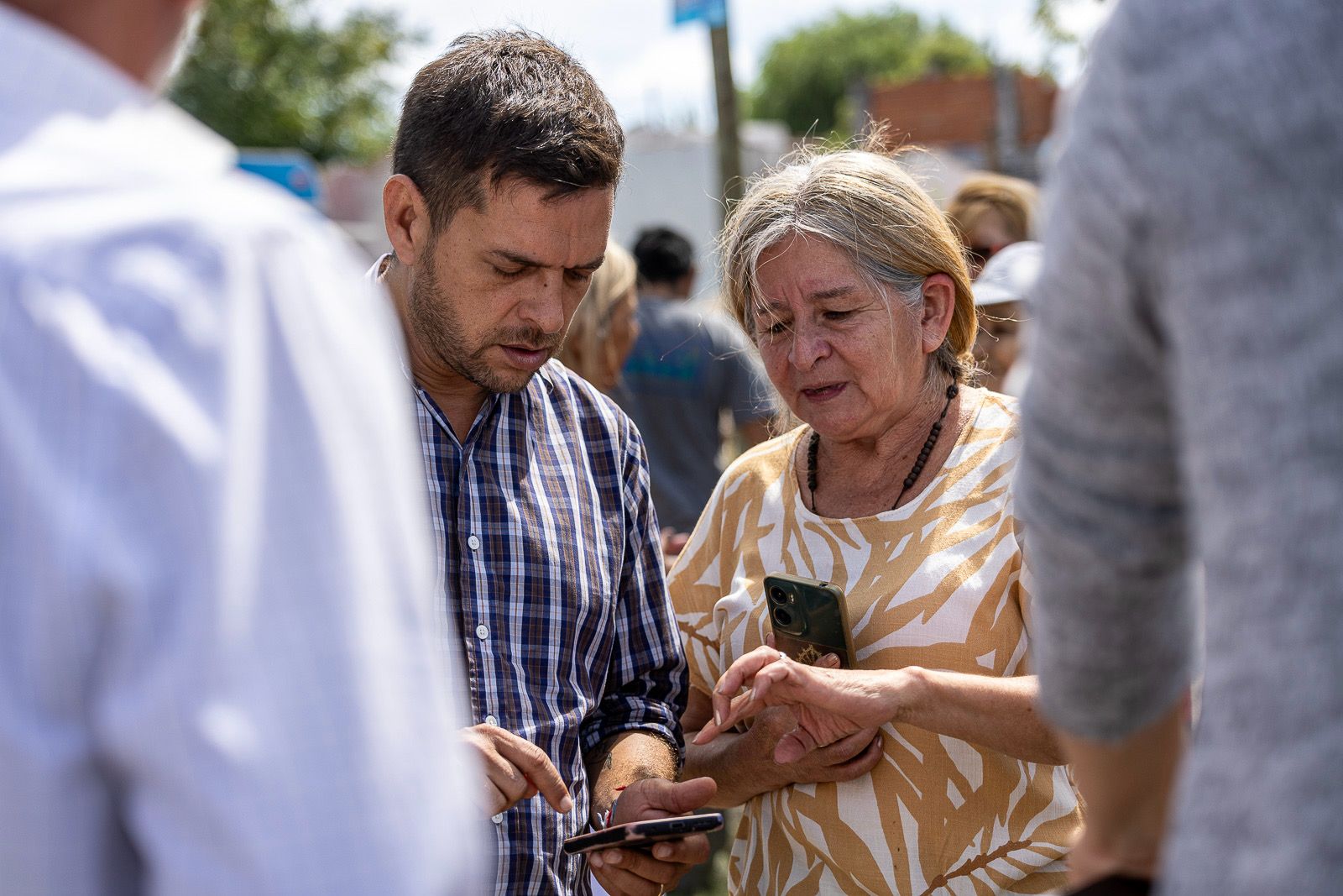 El intendente browniano, Juan Fabiani, y la jefa de Gabinete del Municipio de Almirante Brown, Paula Eichel, acompañaron a vecinos de la localidad de Rafael Calzada durante la instalación de nuevas alarmas vecinales en la intersección de Belgrano y Marco Avellaneda.